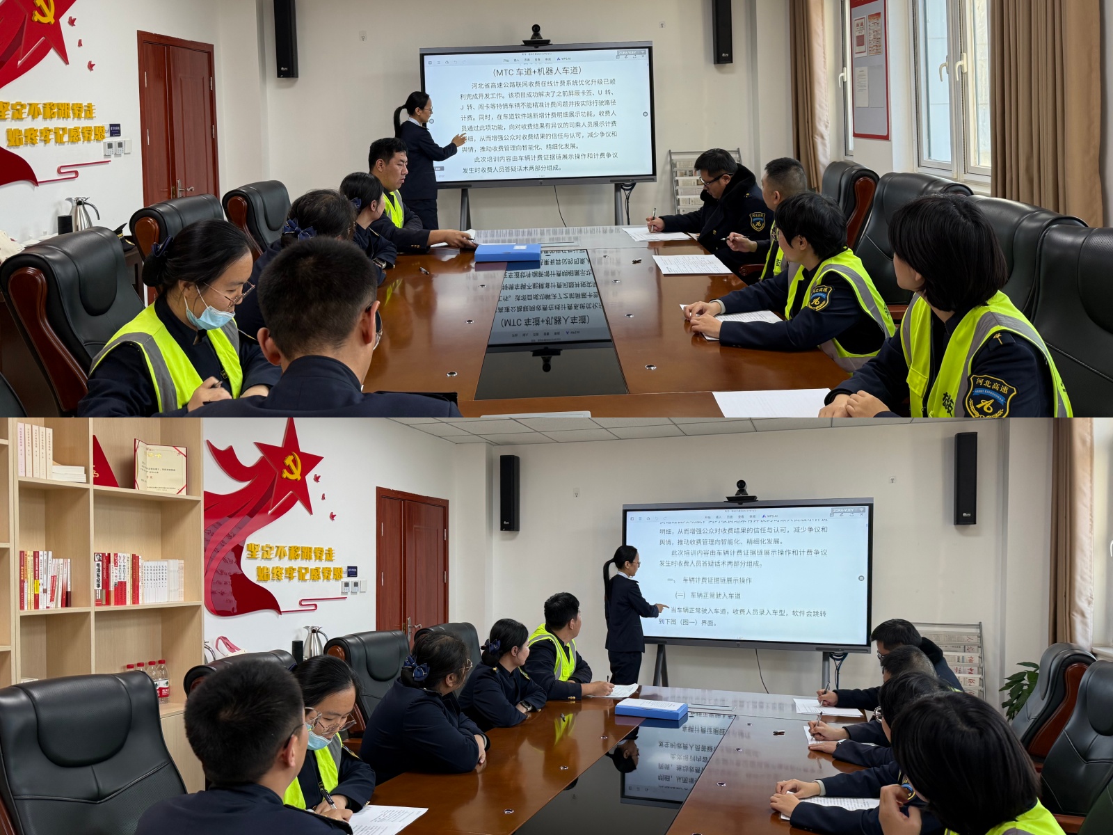 为深入贯彻落实关于优化升级省级在线计费系统的工作部署,切实保障新版省级在线计费系统顺利上线运行,雄安北收费站积极组织人员参加线上培训,并于培训结束后及时开展线下专题巩固培训。本次培训面向在站收费人员、稽核员、票证员及机电员,旨在通过系统讲解与实操指导,全面提升一线员工对新功能、新流程的理解与应用能力,为即将到来的全省系统切换做好充分准备。