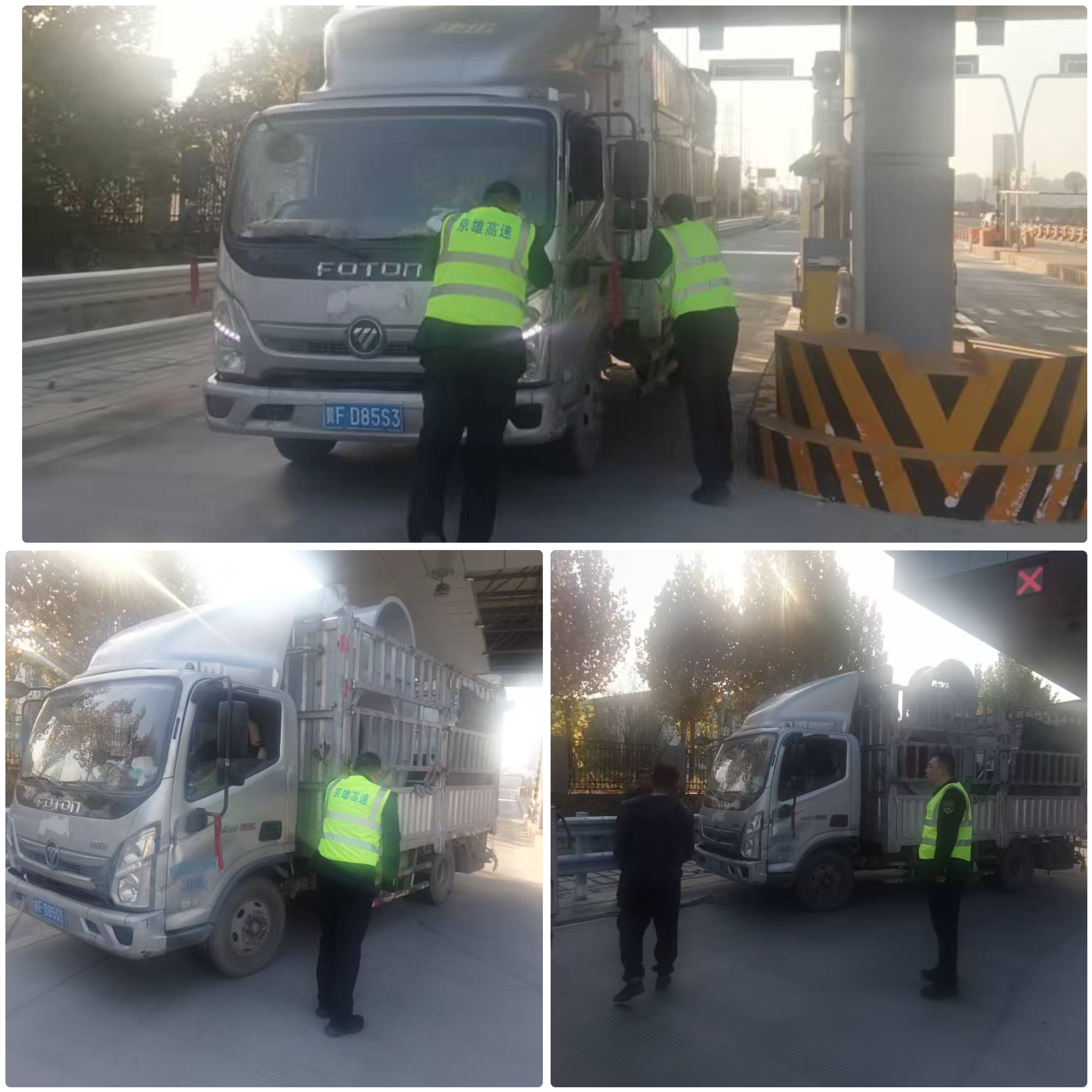 等待期间,当班收费员给司机递上热水,班长则陪着检查货车外观,确认货物固定完好,避免因故障耽误送货还出其他问题。
