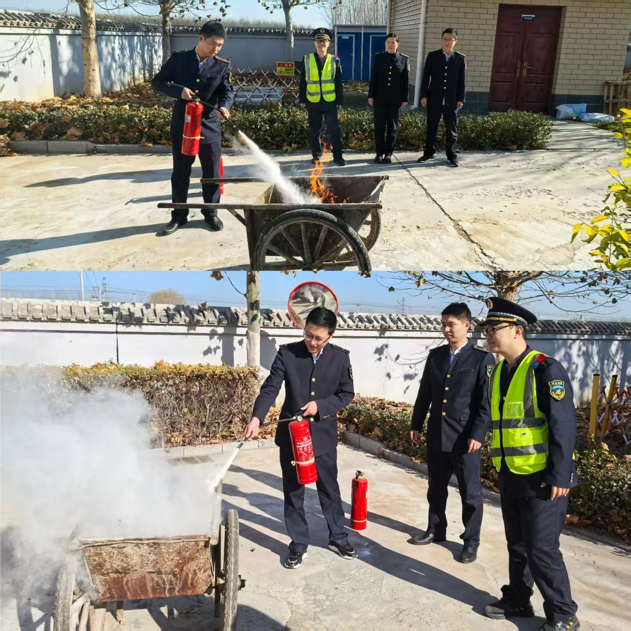 理论培训后,职工们组进行灭火器实操演练。安全管理员进行现场指导,针对“喷管握持不稳”“喷头未对准火焰根部”等问题逐一纠正,通过“实操+纠错”确保人人会操作,切实提升初期火灾应对能力。