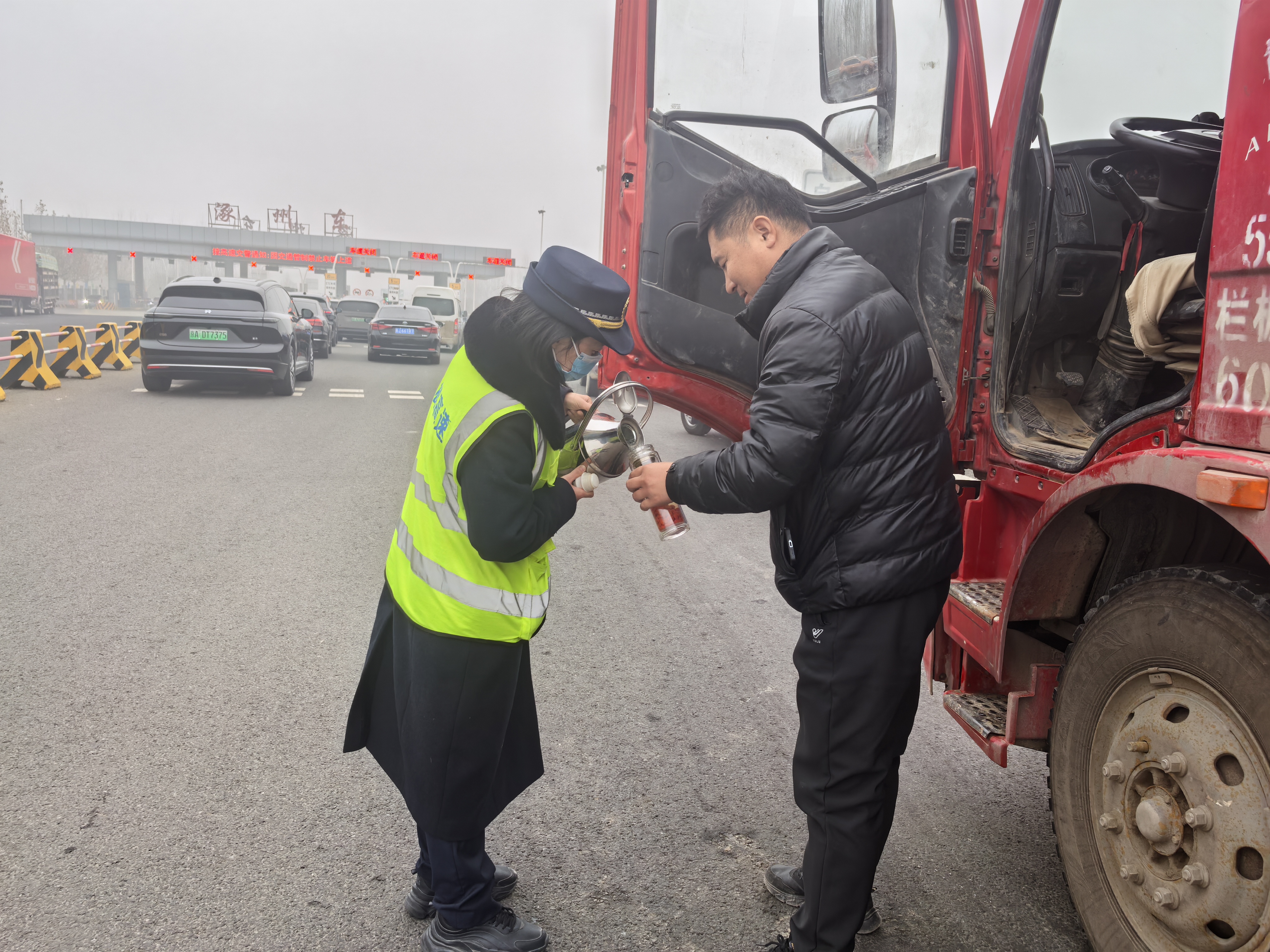 “师傅别急,咱们安全第一,先喝杯热水暖暖身子”收费员提着装满热水的保温壶,穿梭在滞留车辆之间,逐一为司乘送上热水,同时耐心安抚情绪。针对有充电需求的司乘,工作人员引导其前往收费站门卫室使用便民充电设施;遇到不熟悉路况的司机,收费员详细讲解分流路线和周边通行方案,用朴实的话语缓解大家的焦虑。