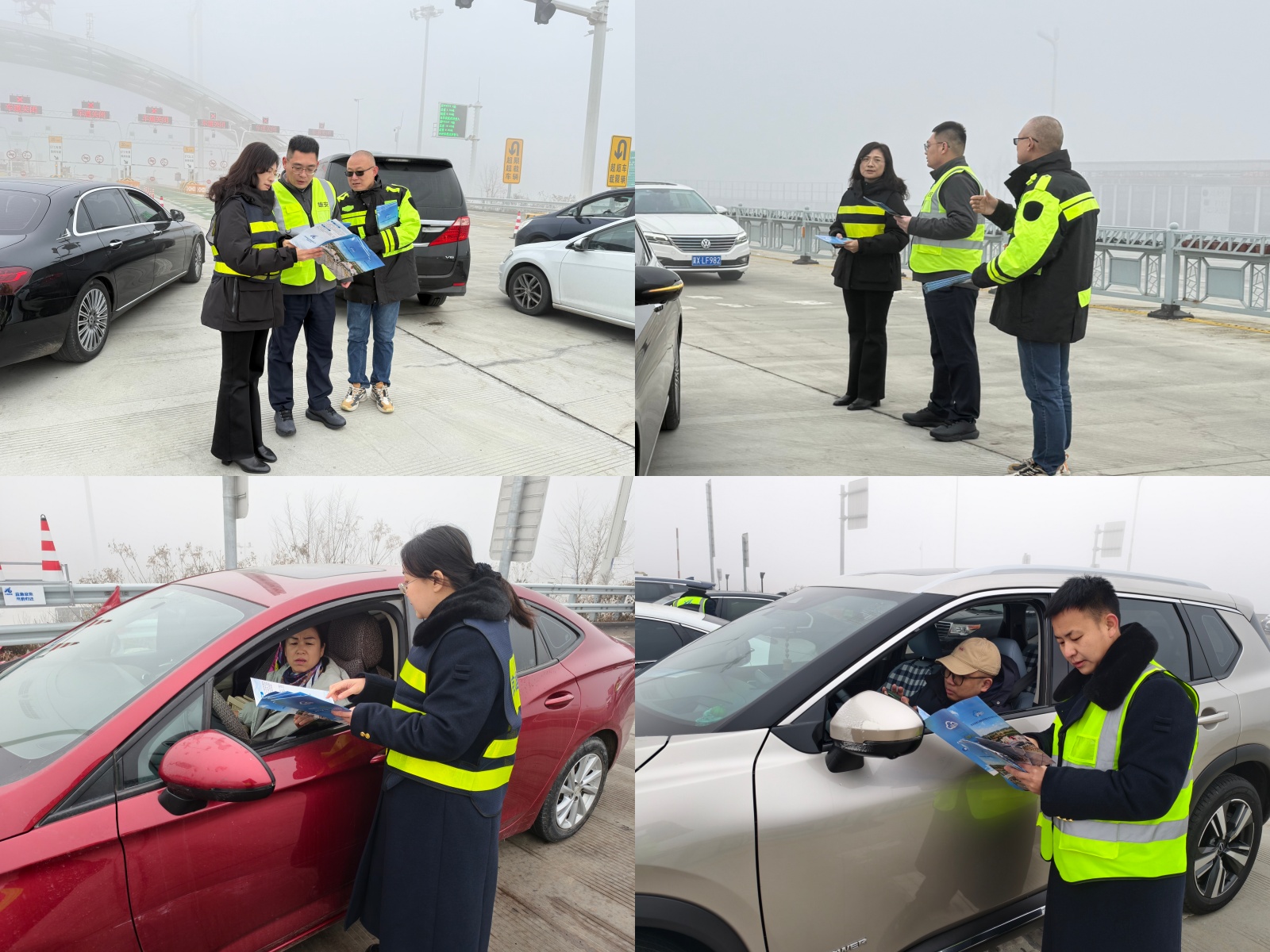 12月18日,受大雾天气影响,京雄高速部分路段能见度显著降低,通行条件受限。面对突发情况,京雄分公司党委委员、副总经理郎爱荣、运营管理部相关负责人员第一时间赶赴雄安北收费站靠前指挥。在分公司统一部署下,雄安北收费站迅速启动应急响应机制,在全力做好现场疏导与秩序维护的同时,同步组织职工深入滞留车辆一线,全面推广“京雄云途”小程序,并现场指导司乘完成预约与启用,以科技手段有效破解恶劣天气通行难题,切实保障群众安全、有序、便捷出行。