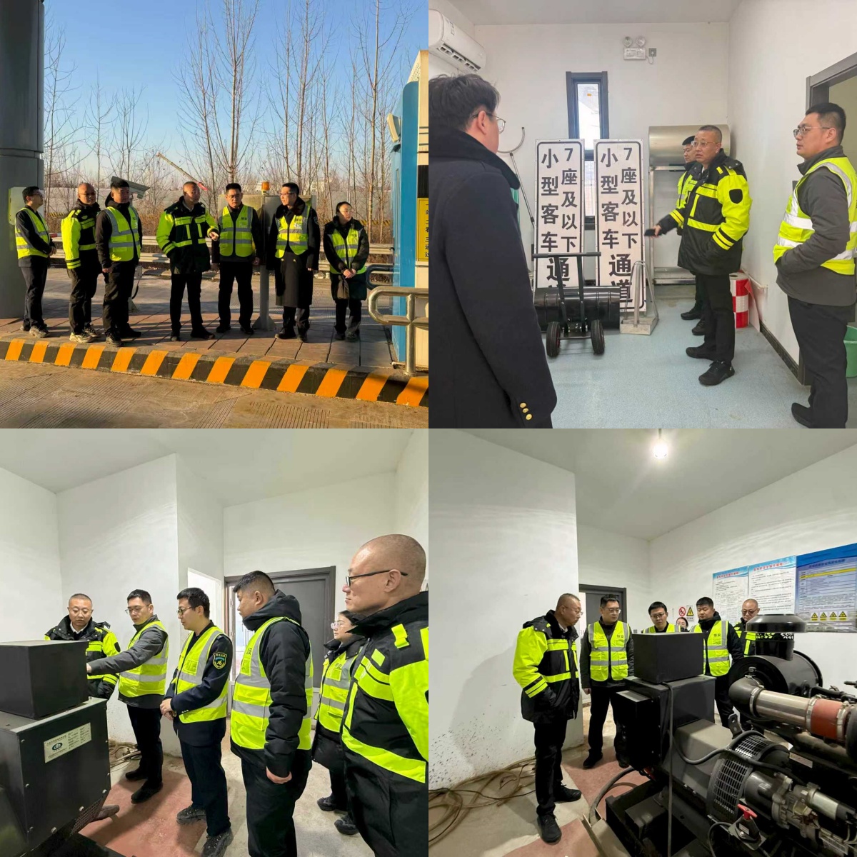 检查组聚焦冬季安全重点,全面督导防寒防冻、用电安全及关键设施运行情况。在收费现场,查看了收费设备及取暖设施的运行状态,详细询问了融雪剂等应急物资储备情况,以及除冰除雪工作的具体安排部署。高建国书记强调,要密切关注气象预警,完善应急预案,保障设备稳定运行,站口畅通。