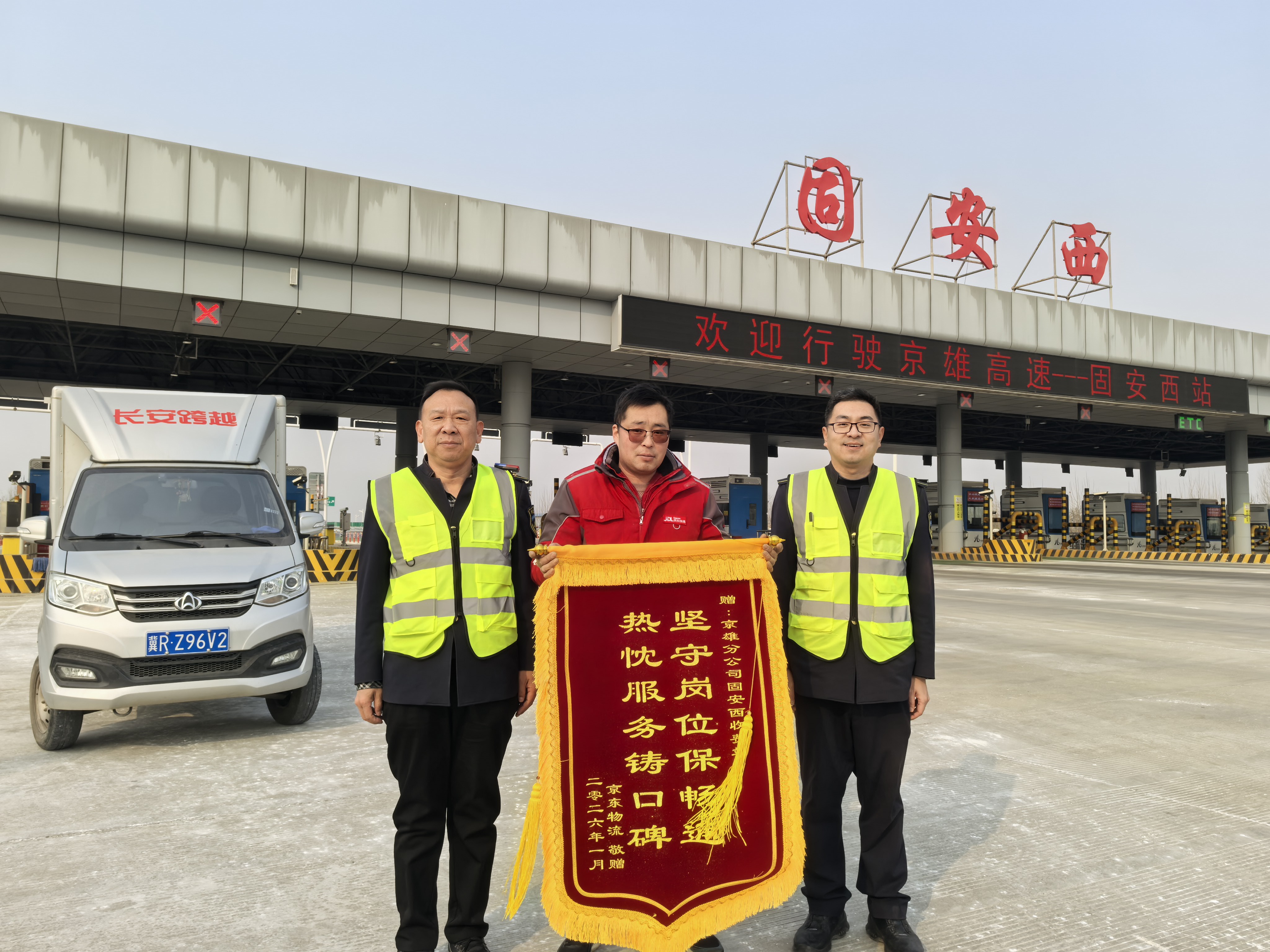 长期以来,固安西收费站以专业、高效、贴心的服务,为物流运输保驾护航,赢得了京东物流司机群体的一致好评。面对送来的锦旗与赞誉,郭贵玉站长表示:“服务好每一位司乘,是我们的职责所在。未来,固安西收费站将继续践行服务宗旨,用真心换真情,以实干担使命,为保障道路畅通、优化营商环境贡献力量。”