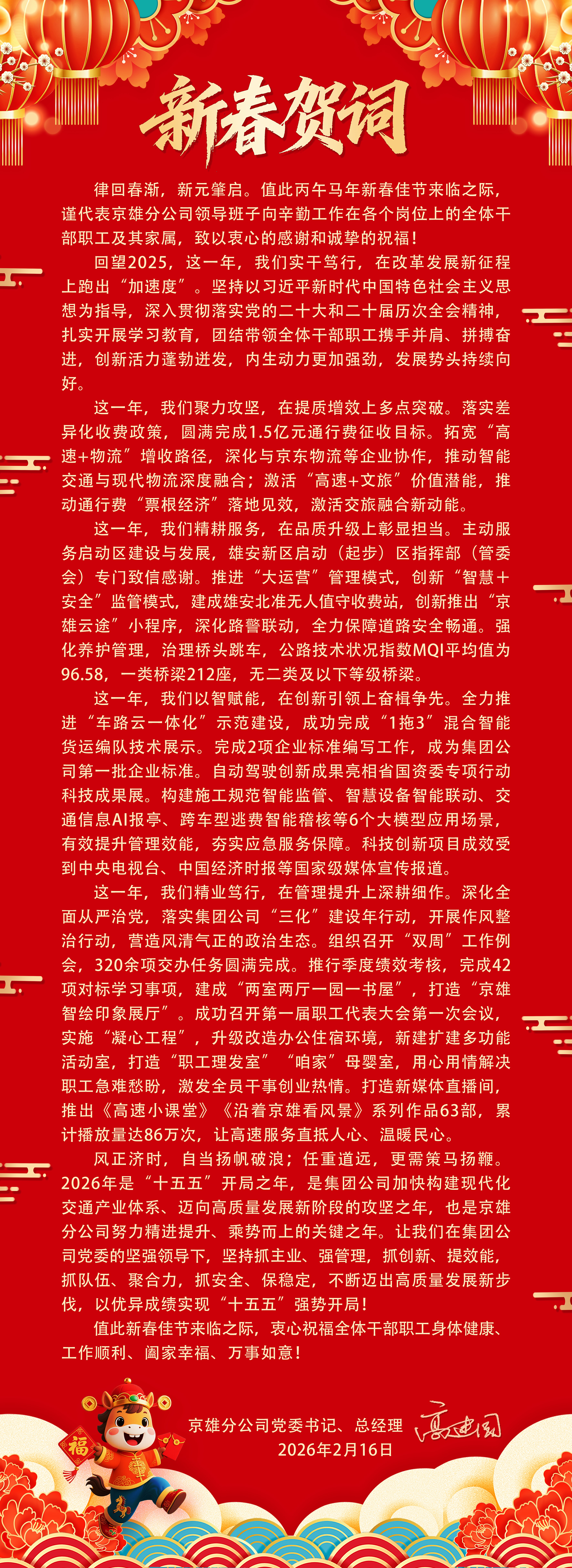 京雄分公司2026年新春贺词