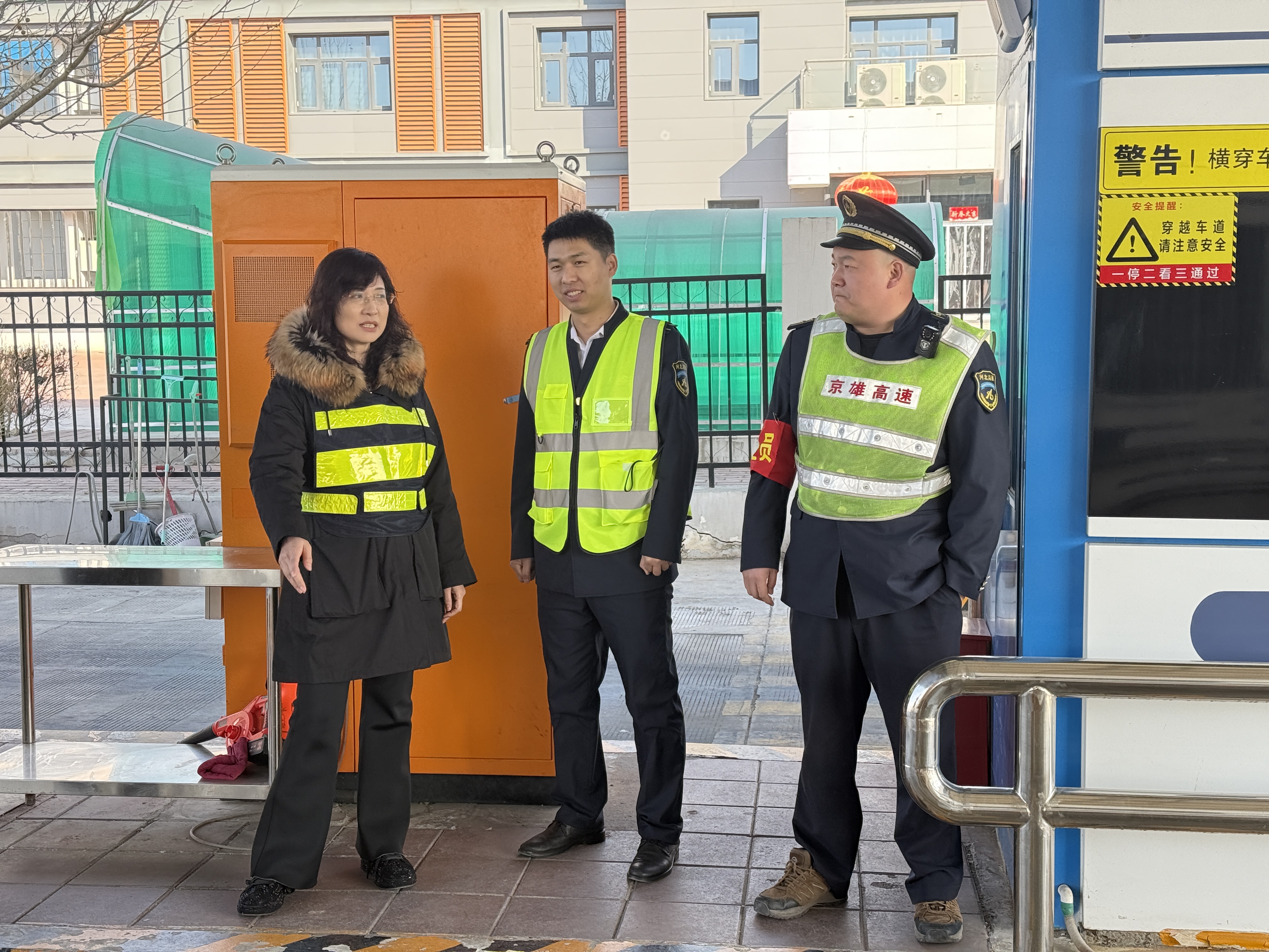 慰问中,郎爱荣一行详细了解春节期间收费站运营保障情况,并重点听取相关工作汇报。在安全生产方面,仔细检查安全隐患排查、设备运行、应急处置等落实情况,要求始终绷紧安全这根弦,从严从细抓好各项安全管控,全力守护春节期间道路运营安全稳定。在便民服务方面,实地查看便民服务落实开展情况,叮嘱工作人员坚守窗口岗位,用心做好咨询引导、便民帮扶等服务,以优质文明服务展现高速良好形象。在后勤生活保障方面,详细询问职工就餐、住宿、节日生活安排等情况,要求持续做好后勤服务,让坚守岗位的职工感受到家一般的温暖。在值班值守方面,认真了解节日值班安排、保通保畅等情况,严格执行领导带班和 24 小时值班制度,严肃值班纪律,确保应急响应及时高效。