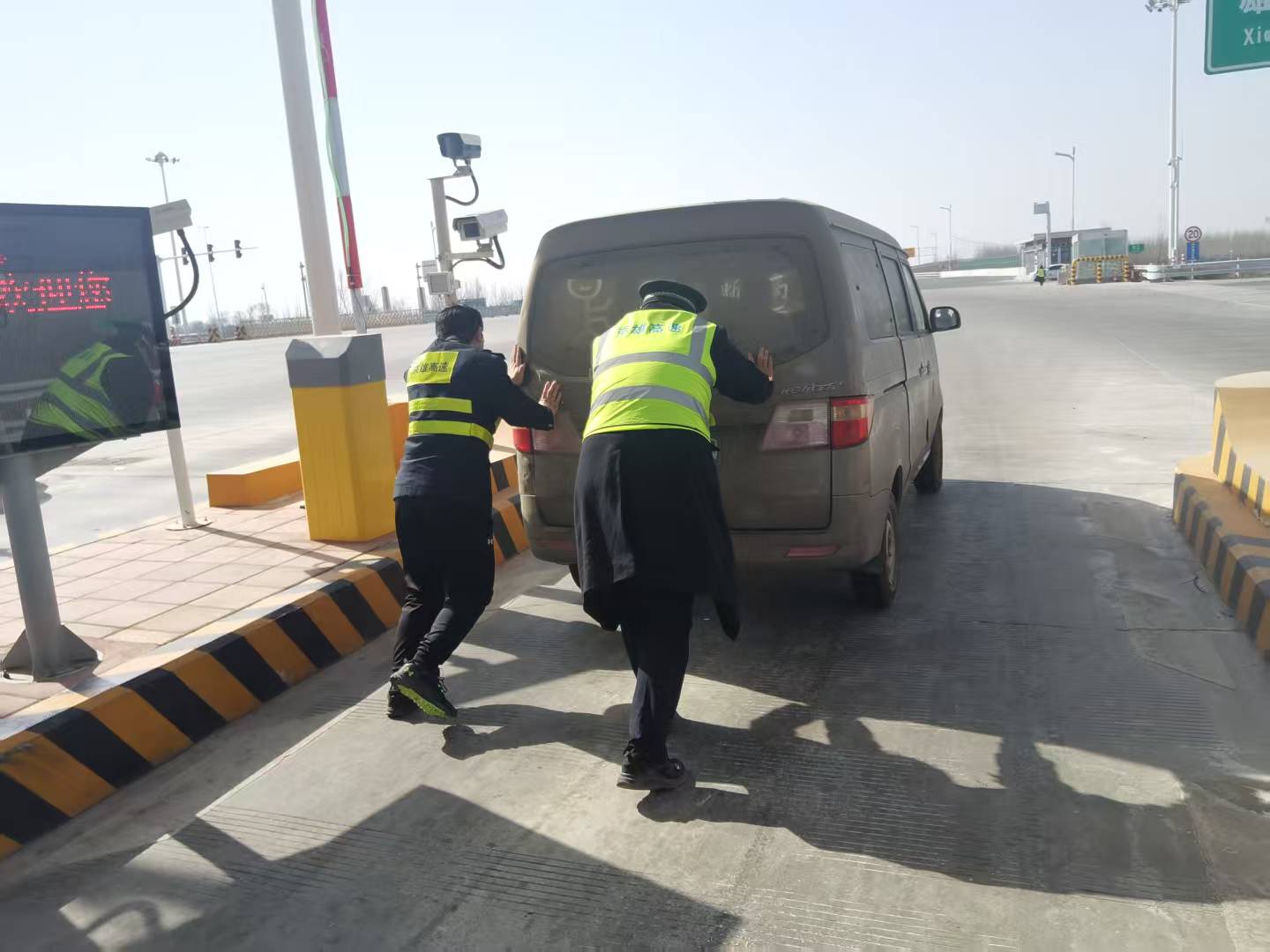 当日,一辆面包车驶入收费车道后突发故障,多次尝试均无法启动,停在车道内,影响其他车辆正常通行。当班收费员崔丽茜第一时间发现异常,迅速将情况上报当班班长肖彤。接到报告后,肖彤立即赶赴现场,同时协调机电员高国乐携带工具支援。三人快速分工,一边做好现场安全警示,引导后方车辆有序避让,一边与司机沟通车况,合力将车辆推至安全区域,协助司机成功点火启动。从发现故障到车辆恢复行驶,整个过程高效稳妥,既保障了收费车道畅通,又为司乘节省了时间。司机对工作人员的及时帮助连连致谢,点赞雄安北收费站有速度、有温度的便民服务。