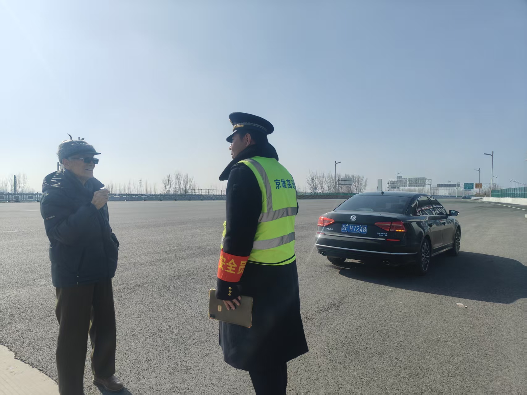 上午,一位88岁高龄的退役军人独自驾车行驶至雄安北收费站,因对新区周边道路不熟悉,一时迷失方向,无法确定前往新区的正确路径,神情焦急。收费站当班工作人员在巡查中发现异常后,立即主动上前询问。得知老人曾为国防事业奉献青春,工作人员肃然起敬,迅速将车辆引导至安全区域。